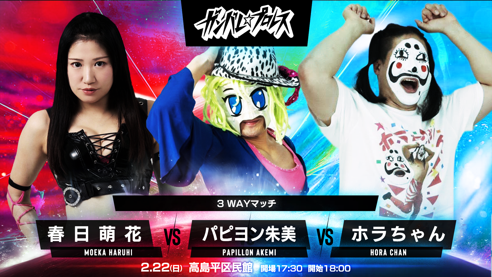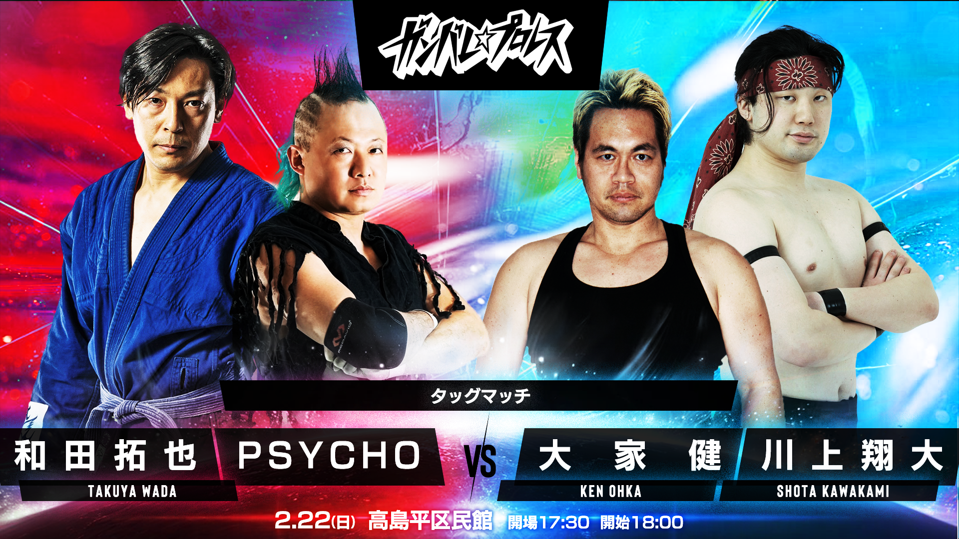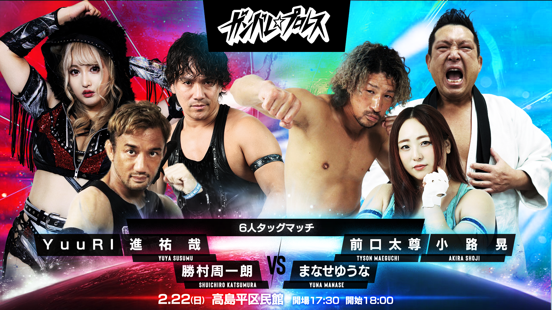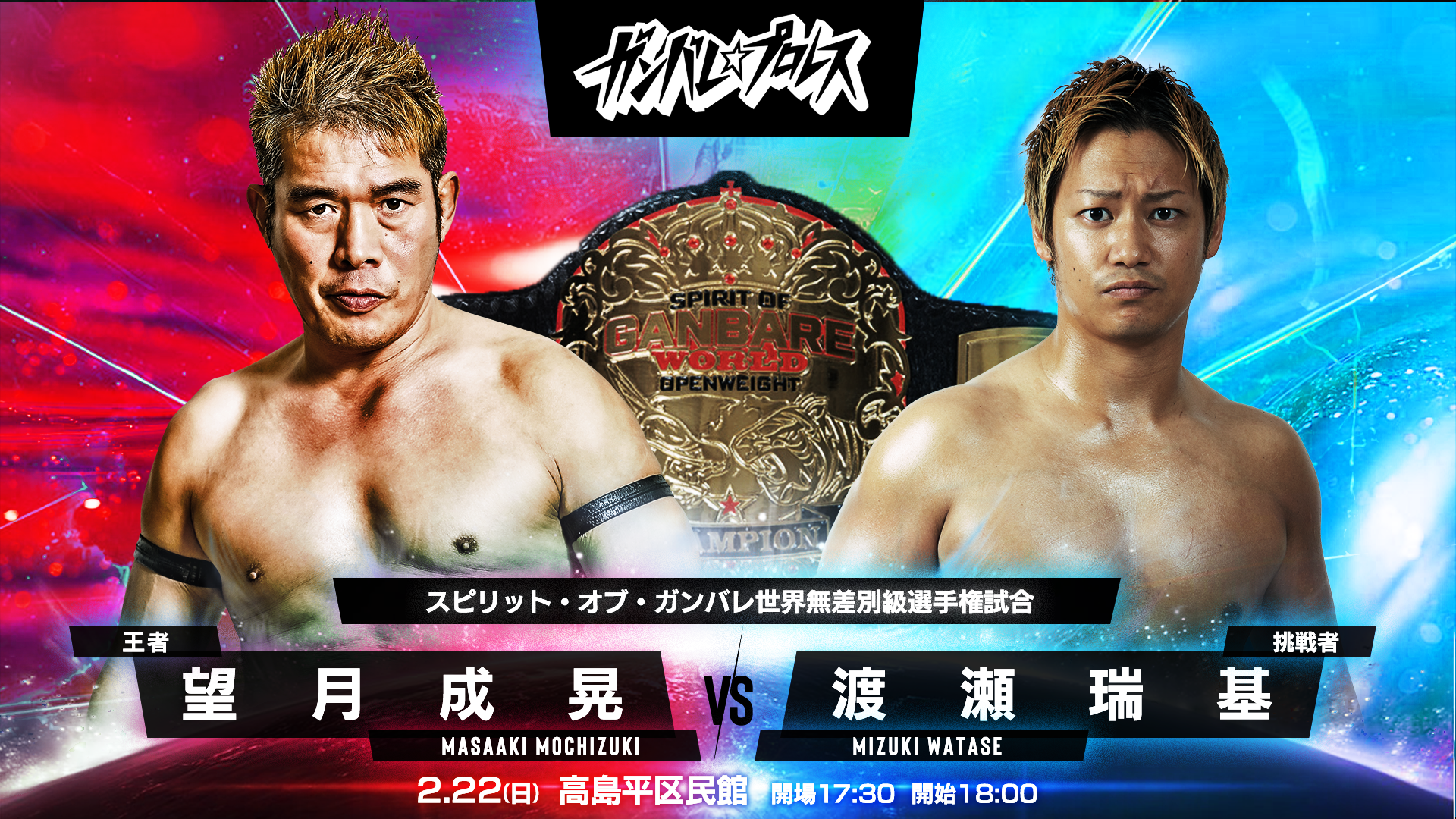■スピリット・オブ・ガンバレ世界無差別級選手権試合<王者>望月成晃 対 渡瀬瑞基<挑戦者>■ミックスド6人タッグマッチ勝村周一朗&進祐哉&YuuRI 対 まなせゆうな&小路晃&前口太尊■タッグマッチ今成夢人&冨永真一郎 対 石井慧介&趙雲子龍■タッグマッチ和田拓也&PSYCHO 対 大家健&川上翔大■3WAYマッチ春日萌花 対 パピヨン朱美 対 ホラちゃん■シングルマッチ元島仙多郎 対 五十嵐玲也全6試合